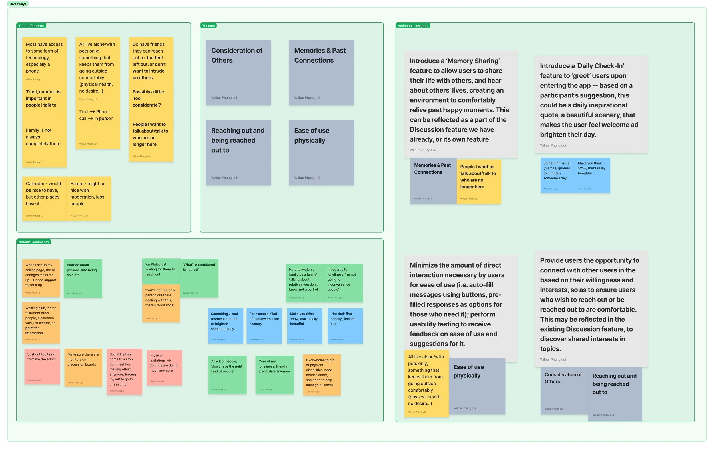Through the creation of an affinity diagram, I was able to identify, what we believed to be, focal points of “loneliness” and its effects from the perspective of our participants.