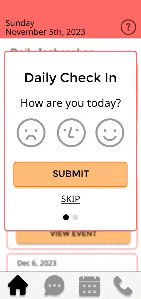 The idea of a Daily Routine is that upon opening Sunrise Connections for the day, elders will be prompted with some form of a “routine check-in” that helps ease them into the app.